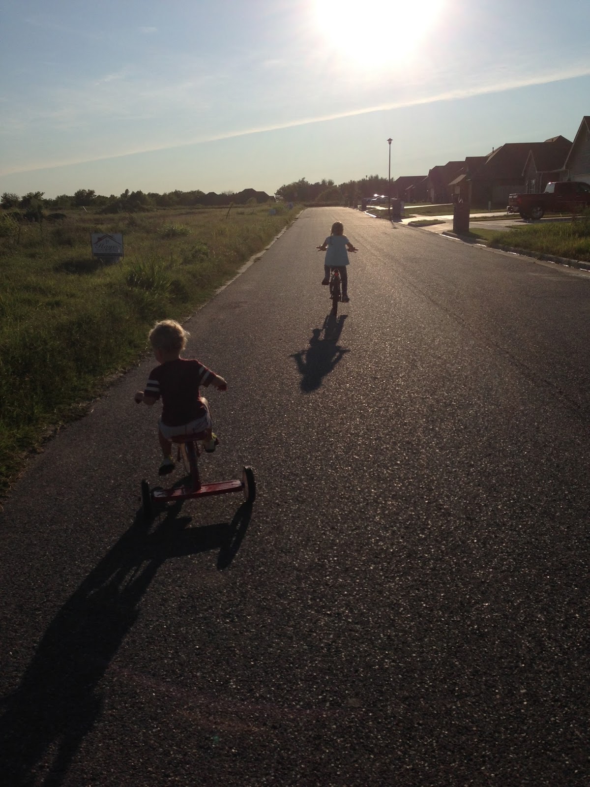 We're spending lots of time outside riding bikes, trikes, tractors, and scooters. Mimi had pity on Avery's tiny clown bike and got her a cool new bike. It's a bit tall for her but she'll grow into it and she's doing great so far. Maybe next year Rob and I will get bikes and join them!