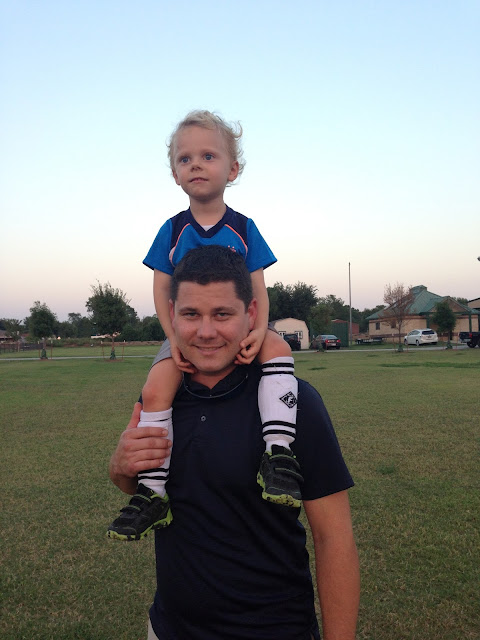 After the informational parent meeting, the kids were split up into groups to circuit through four different stations. At the first two, he didn't want to participate at all but by the last two he was warming up a little bit. There was definitely some rolling around in the grass and some leaving the field entirely. The third circuit involved a tunnel that he couldn't resist crawling through.